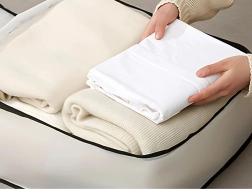Organizator lahko sprejme posteljnino, sezonska oblačila, odeje, brisače in druge tkanine, omogoča njihovo organizacijo v omari, pod posteljo ali na polici.