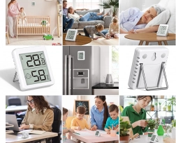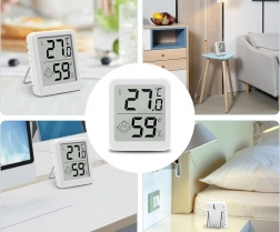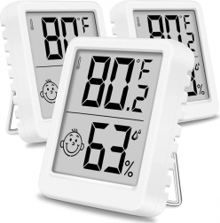 Ohranjajte zdravo in udobno notranje okolje s tem mini termometrom in higrometrom. Velik in berljiv LCD zaslon prikazuje trenutno temperaturo in relativno vlažnost, medtem ko smeško takoj nakaže, ali so razmere optimalne. Naprava je idealna za spalnico, otroško sobo, pisarno, rastlinjak ter za shranjevanje živil.