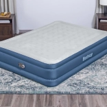 Napihljiva postelja BESTWAY je izdelana iz trpežnega materiala Tough Guard Fortech, ki združuje prožnost PVC-ja s trdnostjo tkanine. Mehak flokast površinski sloj je prijeten na dotik, ne drsi in povečuje udobje spanja. Stabilna konstrukcija Wave Beam enakomerno porazdeli težo in preprečuje posedanje.