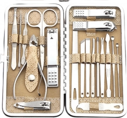Ta univerzalni set ponuja vse, kar potrebujete za popolno nego rok in stopal. Kakovostna orodja iz stainless steel zagotavljajo čist rez, natančno piljenje in nežno nego obnohtne kožice. Stilski bež etui vse ohranja pregledno organizirano in je idealen za prenašanje.