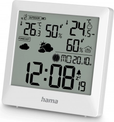Vremenska postaja Hama Palawan prinaša zanesljivo spremljanje klime v gospodinjstvu. Brezžični senzor zagotavlja natančen odčitek notranje in zunanje temperature ter vlage z možnostjo preklapljanja enot °C/°F. Pregleden LCD zaslon dopolnjuje štiriikonska napoved za hitro orientacijo.