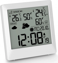 Vremenska postaja deluje tudi kot praktična ura z 12/24-urnim formatom, prikazuje dneve v tednu, faze Lune in ponuja budilko s funkcijo dremeža.