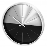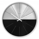 Aluminijasta številčnica v elegantni kombinaciji srebrne in črne s steklenim pokrovom se prilega kuhinji, dnevni sobi ali kopalnici.