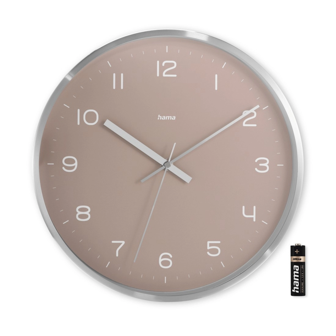 Nežna rožnata številčnica z jasnimi arabskimi številkami lepo dopolnjuje sodoben interier in je odlično berljiva tudi na daljavo. Ura je primerna za kuhinjo, dnevno sobo in spalnico ter bo postal izrazit dodatek vsaki steni.