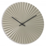 Stenska ura Barbados s premerom 30 cm združuje minimalističen dizajn, kovinsko izvedbo in tiho, enakomerno delovanje brez tiktakanja. Elegantna sprednja stran z plisirano teksturo, navdahnjeno z videzom ventilatorja, se poda tako modernim kot klasičnim interierjem – od kuhinje preko dnevne sobe do pisarne. Zanesljiv kvarčni (quartz) mehanizem zagotavlja natančno merjenje časa.