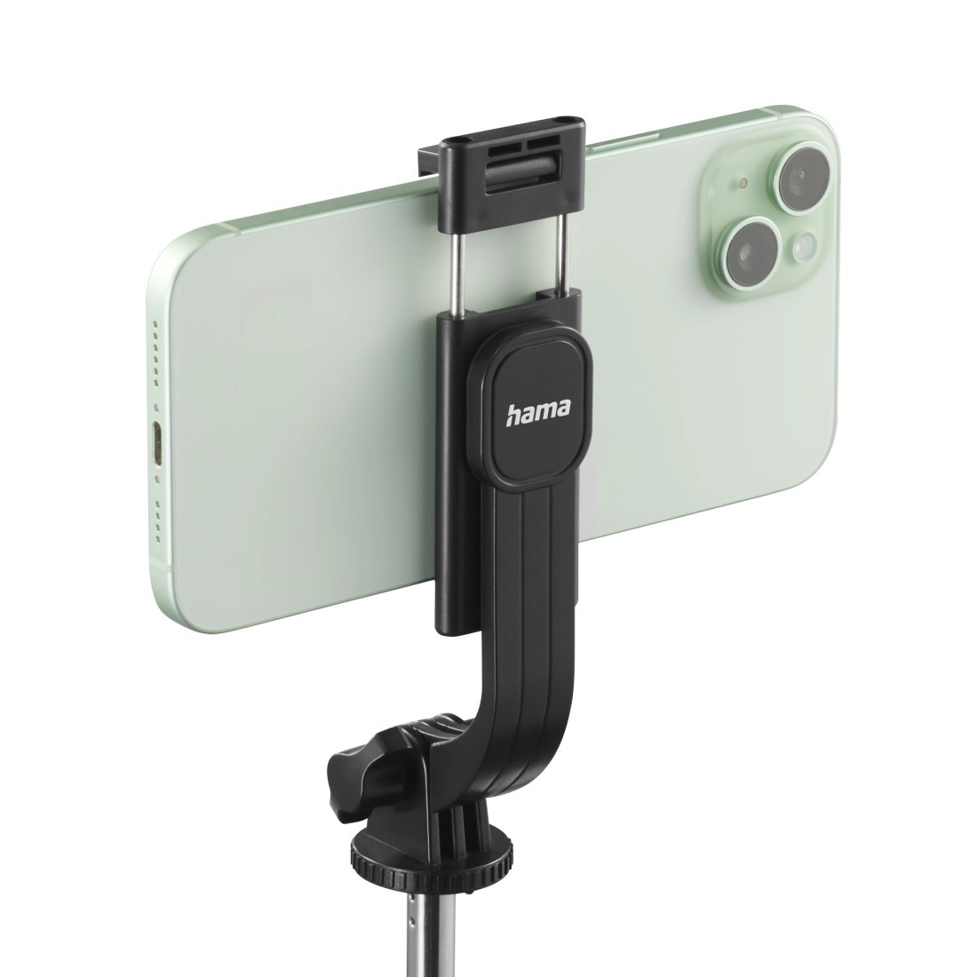 Hitro-snemljiv nosilec je vrtljiv za gladek prehod med pokončnim in ležečim načinom. Združljivo s pametnimi telefoni širine 6,2–9,0 cm, rebraste gumirane podloge pa ščitijo telefon in ga trdno držijo na mestu. Vgrajen tripod z gumiranimi nogami dodaja stabilnost pri snemanju in fotografiranju.