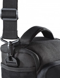 Oblazinjeni ročaj, snemljiv in nastavljiv ramenski pašček ter zanka za pas za maksimalno udobje pri prenašanju.