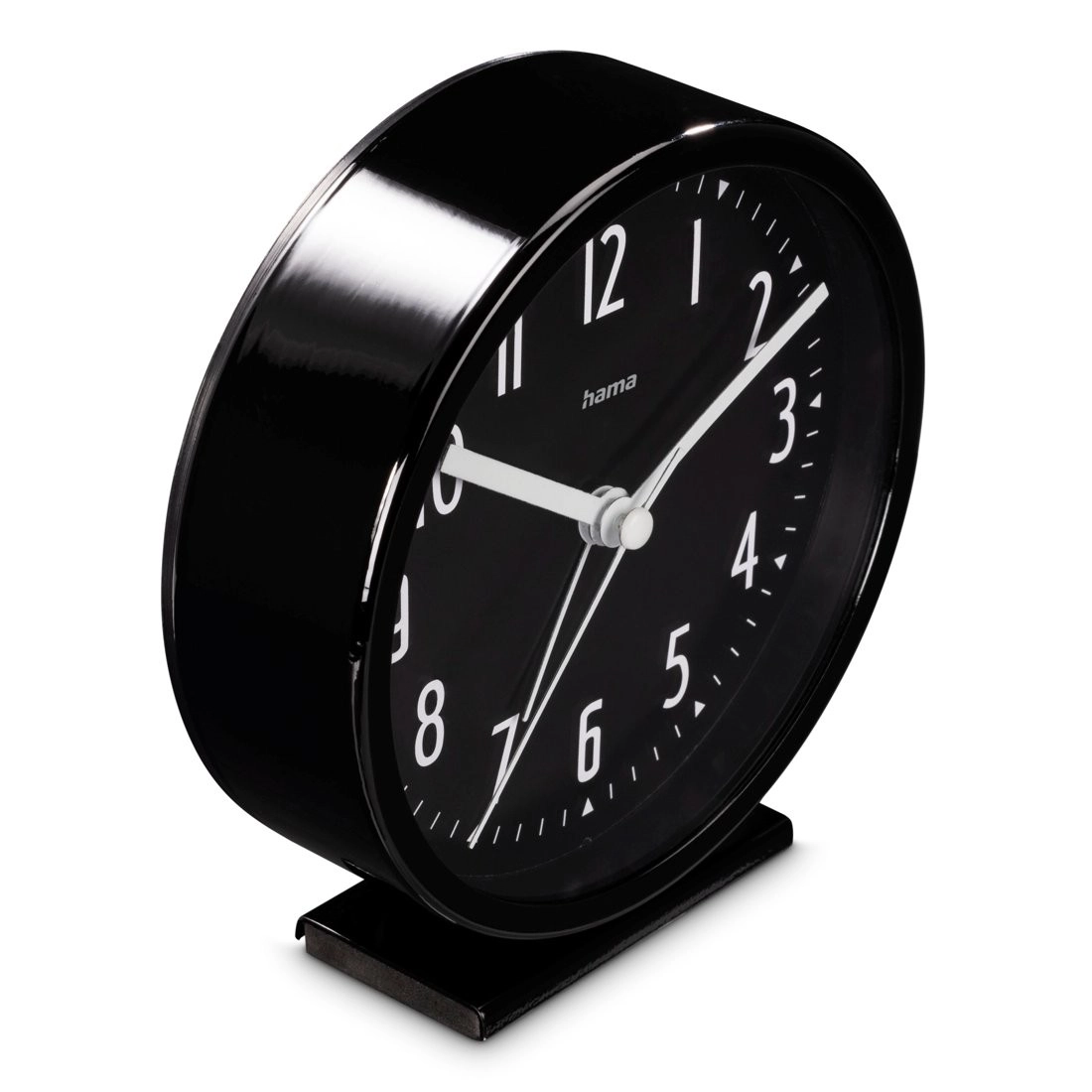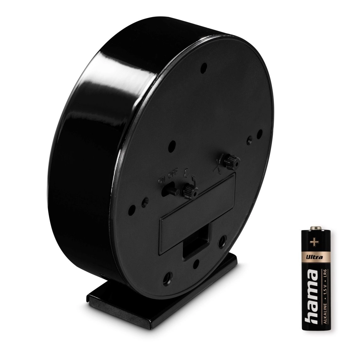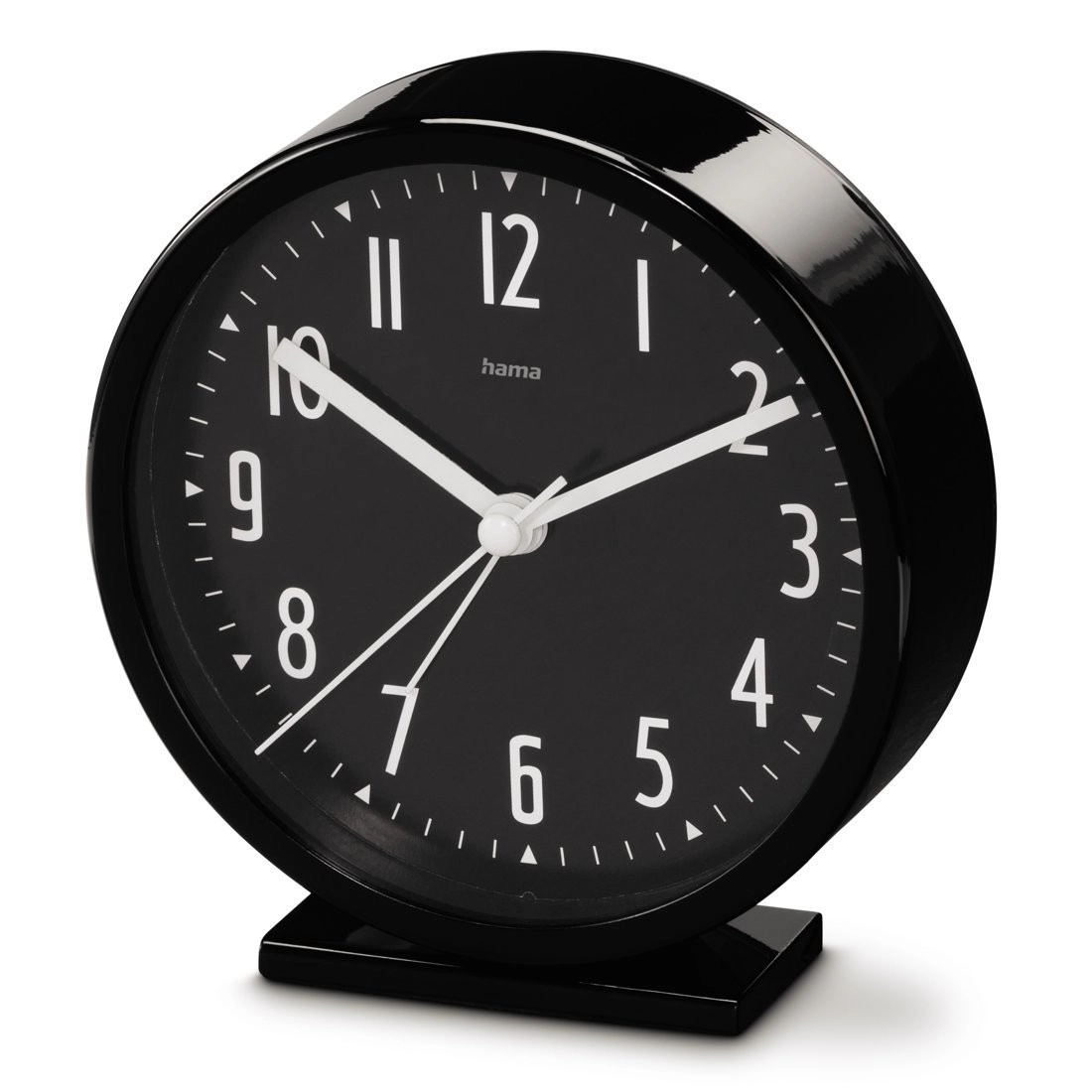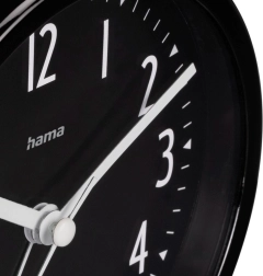 Hama Skye je stilska analogna budilka s črnim, lahko berljivim številčnikom in velikimi belimi številkami, ki se odlično poda tako v moderne kot klasične interierje. Tih mehanizem s tekočo sekundno kazalko odpravlja moteče tiktakanje in zagotavlja neprekinjen spanec.