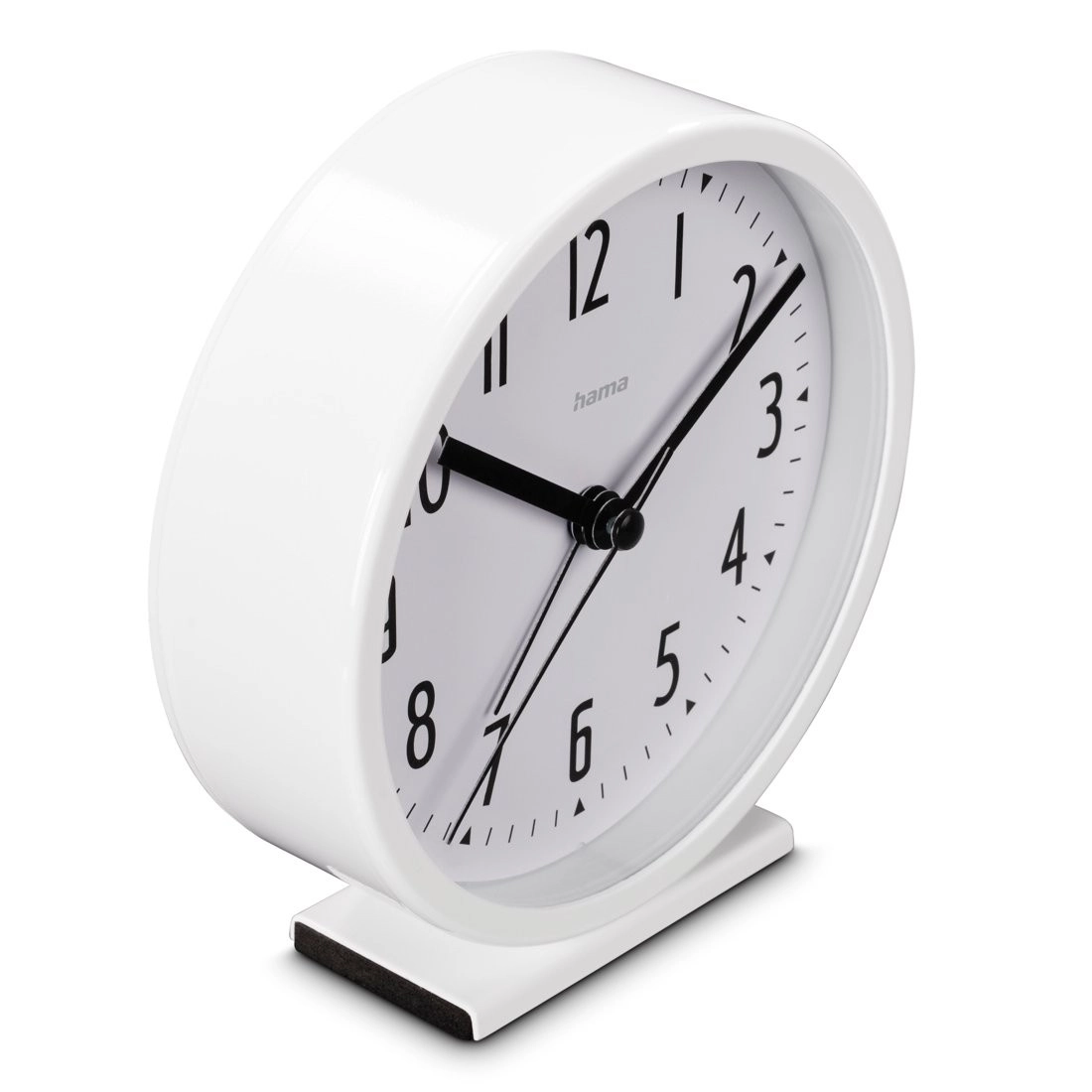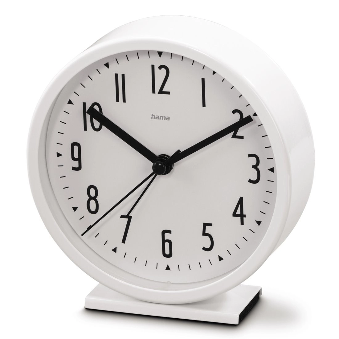 Prebudite se vedno pravočasno z budilko Hama Skye, ki združuje sodoben minimalističen dizajn in zanesljivo funkcionalnost. Velika bela številčnica s kontrastnimi črnimi arabskimi številkami zagotavlja hitro orientacijo tudi v slabših svetlobnih razmerah, medtem ko tekoče gibanje sekundnega kazalca odpravlja moteče tikanje.