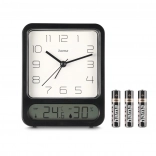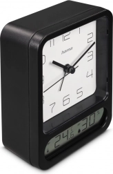 Ta stilska budilka združuje klasičen videz z moderno funkcionalnostjo. Velik analogni številčnik s kontrastno belo površino in arabskimi številkami zagotavlja odlično berljivost, medtem ko spodnji digitalni zaslon neprekinjeno prikazuje temperaturo in vlažnost v notranjosti. Tako dobite praktično domačo vremensko postajo in zanesljiv časomer v enem.