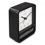Zaradi kompaktnih mer in napajanja z baterijami budilko zlahka postavite na nočno omarico ali pisalno mizo brez potrebe po kablih. Minimalističen črn okvir se poda tako modernim kot klasičnim interierjem, pregledno upravljanje na zadnji strani pa olajša nastavitev časa in alarma.