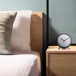Elegantna budilka Flores v črni barvi združuje brezčasen videz in zanesljivo funkcionalnost. Zaradi čiste bele številčnice, kontrastnih kazalcev in izrazitih indeksov je čas odlično berljiv tudi z večje razdalje. Minimalistično ohišje na stabilnih kovinskih nogicah v spalnici, delovni sobi ali dnevnem prostoru deluje kot estetski dodatek.