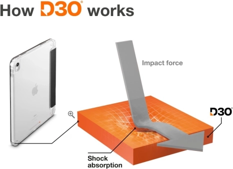 Licencirana tehnologija D3O absorbira udarce in pomaga zaščititi iPad pri padcih. Povišani robovi dodatno ščitijo kamero in zaslon pred poškodbami.