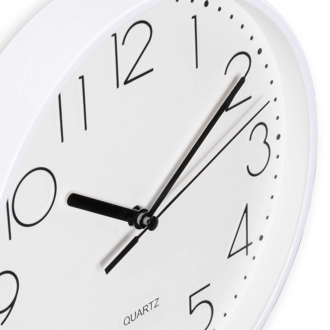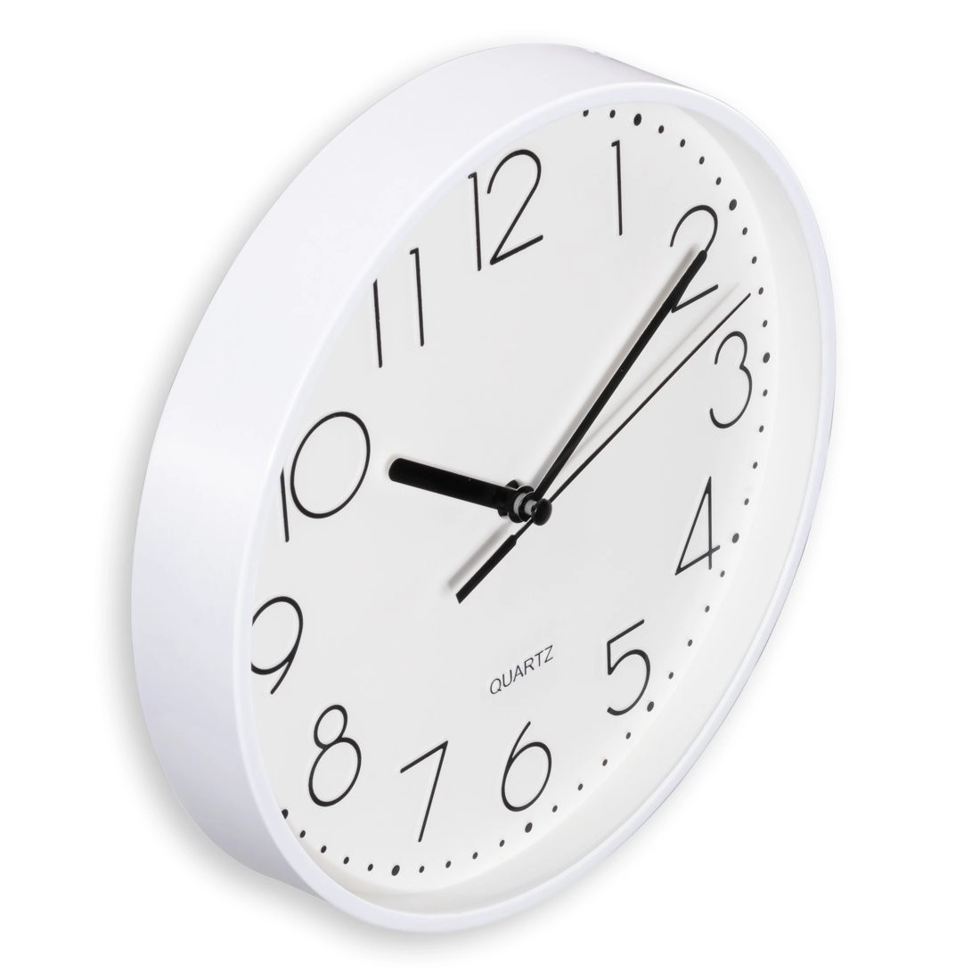 Bela številčnica z izrazitimi arabskimi številkami in tremi kazalci zagotavlja enostavno čitljivost časa. Plastično telo in stekleni pokrov nudita vzdržljivost in ščitita številčnico. Napajanje z eno AA baterijo omogoča dolgotrajno zanesljivost.