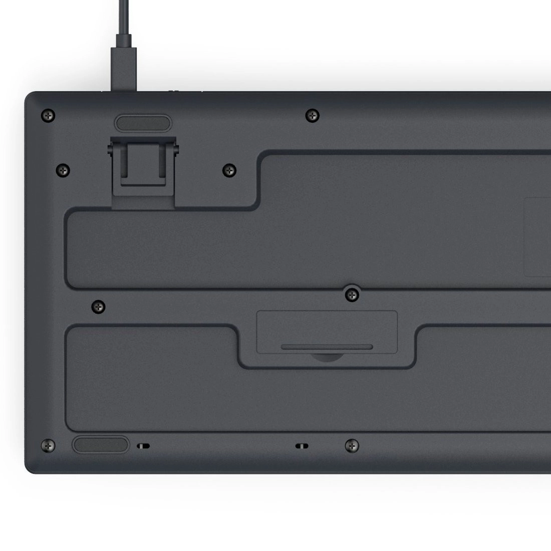 Ta tipkovnica ponuja zložljive nogice za nastavitev naklona, kar omogoča udobno tipkanje.