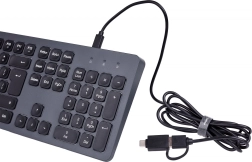 Žična tipkovnica Hama CK-400 ponuja udobno povezavo s pomočjo odklopljivih kablov USB-A/USB-C. Ta zasnova omogoča enostavno zamenjavo kabla v primeru poškodb, kar povečuje vzdržljivost in zmanjšuje stroške. Adapter USB-C na USB-A zagotavlja široko združljivost.