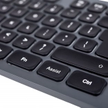 Ergonomija in udobje - tipkovnica s škarjastim mehanizmom je tiha in ima nastavljivo osvetlitev za udobno delo v temnih okoljih. Zložljive nogice prilagodijo kot tipkovnice za maksimalno udobje.