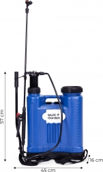 Nahrbtni tlačni razpršilnik MULTIGARDEN 16 l je zanesljiva rešitev za škropljenje pesticidov, herbicidov in fungicidov, za nežno zalivanje rastlin ter čiščenje zunanjih površin. Robusten rezervoar iz PP/PE, tlak 2–4 bar in dolga plastična lanca zagotavljajo natančen nanos tudi na težko dostopnih mestih. Široko grlo z integriranim cedilom olajša polnjenje in preprečuje mašenje šob.
