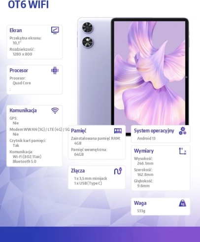 Tablični računalnik Oukitel prinaša sodoben dizajn in odlično uporabniško izkušnjo. Z 10,1" IPS zaslonom boste uživali v vrhunski vizualni izkušnji pri gledanju videov, branju ali delu. Zahvaljujoč štirijedrnemu procesorju Rockchip RK3562 s frekvenco 2,0 GHz in 4 GB RAM-a boste uživali v tekočem delovanju aplikacij in večopravilnosti brez zamikov.