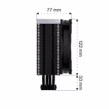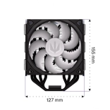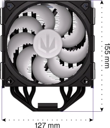 ENDORFY Fera 5 Black ARGB je kompakten in zmogljiv zračni hladilnik, razvit v sodelovanju s Synergy Cooling za najboljše razmerje zmogljivost/hrup. Gosto rebrovanje, asimetrični hladilnik in štiri bakrene heatpipe cevi z neposrednim dotikom IHS procesorja učinkovito odvajajo toploto tudi pri visoki obremenitvi, medtem ko optimiziran enosmerni pretok zraka poveča učinkovitost hlajenja.