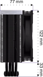 Bakrene toplotne cevi z neposrednim stikom s CPU in gosto, asimetrično rebrovanje učinkovito odvajajo toploto ter izboljšajo združljivost s pomnilniki.