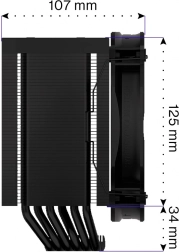 Fortis 5 Black je robusten hladilnik CPU, zasnovan za največjo učinkovitost in minimalen hrup. Gosto rebrast aluminijast pasiv, povezan s šestimi bakrenimi toplotnimi cevmi, odlično odvaja toploto s procesorja. Optimizacija za enosmerni pretok zraka zagotavlja vrhunsko zmogljivost v danem razredu in stabilne temperature tudi pri dolgotrajni obremenitvi.