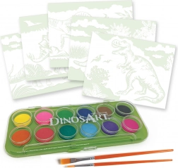 Čarobni akvarelni set DinosArt otrokom prinaša ure ustvarjalne zabave. Zahvaljujoč posebnim čarobnim ploščam se motivi dinozavrov postopoma razkrivajo pri delu z vodo in barvami, kar spodbuja domišljijo in fino motoriko. Celovit komplet je primeren za začetnike in tudi za bolj izkušene male slikarske nadarjenosti.