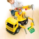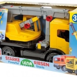 Robustno otroško avtodvigalo znamke LENA bo razveselilo male graditelje z realističnimi funkcijami in vzdržljivo izvedbo. Je popolnoma mehansko funkcionalno, ima 270° vrtljivo roko, izvlečne stabilizacijske noge in vitlo s kavljem za dvigovanje tovora. Ob polnem izvleku doseže dvigalo impresivno dolžino do 115 cm, kakovostna plastika pa zlahka prenese obilico otroške domišljije.