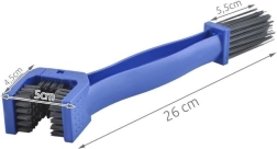 Univerzalna čistilna krtača je zasnovana za temeljito nego verig koles in motornih koles. Tristranski nastavek zajame verigo z več strani hkrati, medtem ko se drugi, ravni krtačni del posveti zobnikom, vijakom in drugim težje dostopnim mestom. Trpežne najlonske ščetine učinkovito odstranjujejo mast in umazanijo, kar prispeva k bolj gladkemu delovanju in daljši življenjski dobi verige.