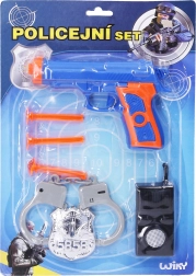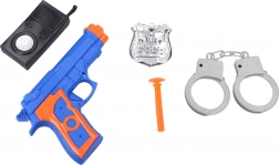 V paketu je pištola s prisesalnimi puščicami za varno streljanje, značka za pravi policijski videz, lisice za “areacijo” tatov in radijska postaja za koordinacijo akcij. Set je primeren za otroke od 3 let in podpira razvoj domišljije ter igro vlog.
