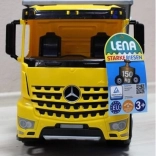 Ta otroški prekucnik Mercedes Giants Dump Truck ponuja neverjetno zabavo za otroke. Model AROCS je troosni z realističnim dizajnom, vključno z rumeno kabino, črnim podvozjem in srebrno prikolico.