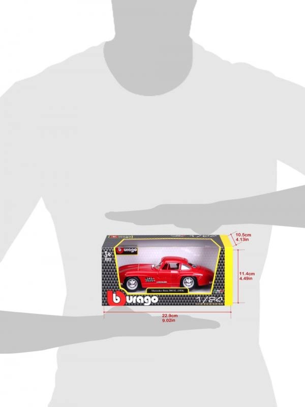 Doživite čar zgodovinske elegance s kovinskim modelom Mercedes Benz 300SL v rdeči izvedbi. Ta model v merilu 1:24 znamke Bburago ponuja verodostojne podrobnosti in natančno izdelavo.