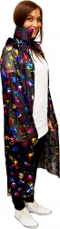 Spremenite vsako zabavo v čarobni dogodek. Ta bleščeči čarovniški plašč z bučami dopolni vsak otroški kostum, ovratnik in vrvica pri vratu pa poskrbita, da dobro ostane na mestu. Potisk barvitih buč doda izviren in igriv videz – popolno za noč čarovnic, karneval ali šolske prireditve.