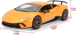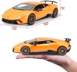 Legendarni LAMBORGHINI Huracán Performante v merilu 1:24 bo razveselil vsakega ljubitelja hitrih avtomobilov. Kovinska karoserija (die-cast) s plastičnimi detajli, realistične proporcije in natančen lak naredijo iz tega modela privlačen kos za vitrino in za otroške roke.