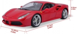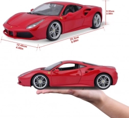 Model Bburago zvesto ujame dinamične linije in detajle vozila Ferrari 488 GTB v elegantni rdeči barvi. Zahvaljujoč kovinski karoseriji, natančnemu laku in realističnim kolesom deluje kot pravi avtomobil v miniaturi. Odpirajoča se vrata, pokrov motorja in zadnji del omogočajo vpogled v dovršeno notranjost in drobovje vozila.