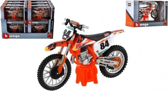 Motocikel Bburago izstopa s svojo podrobno izdelavo, kar daje avtentičen videz motociklu KTM 450 SX-F Factory Edition 2018.