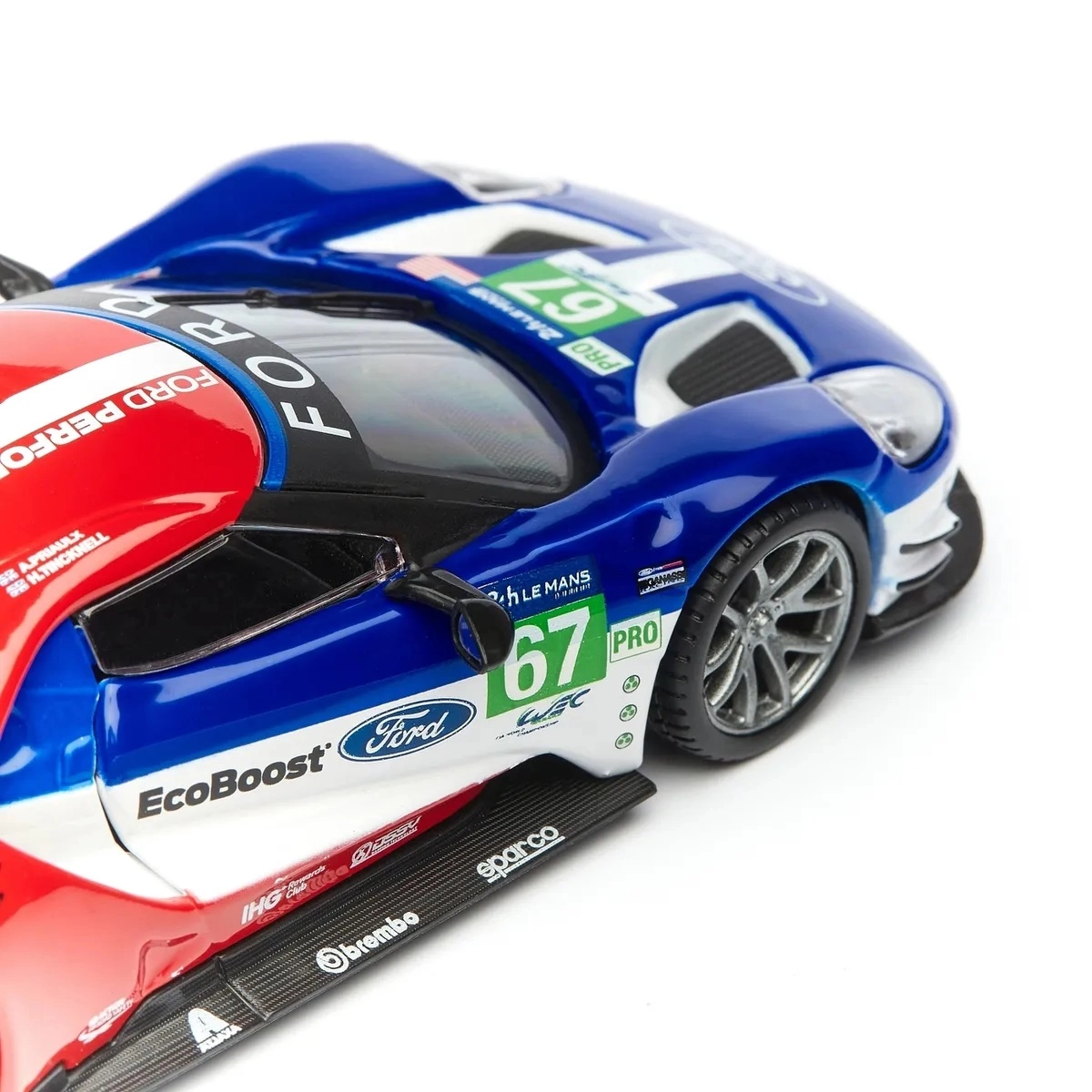 Model v merilu 1:32 meri približno 13 cm in izstopa z modro kovinsko barvo, velikim zadnjim spojlerjem, difuzorjem ter realističnimi elementi, kot so ogledala, podrobnosti zavor in dirkalne štartne številke. Odlična izbira za ljubitelje znamke FORD, vztrajnostnih dirk in zbiratelje modelov avtomobilov.