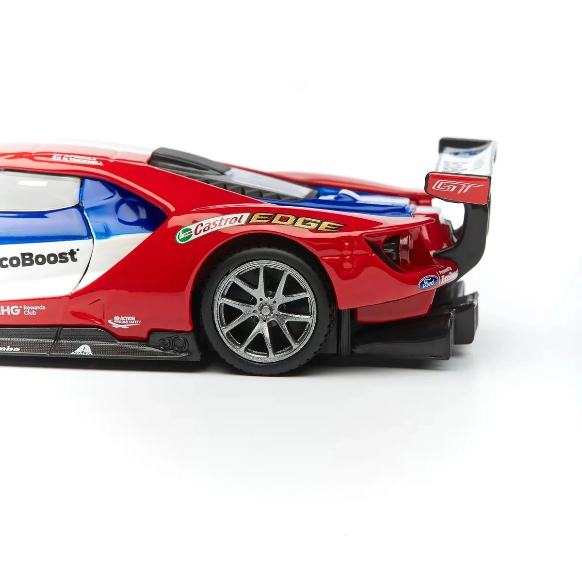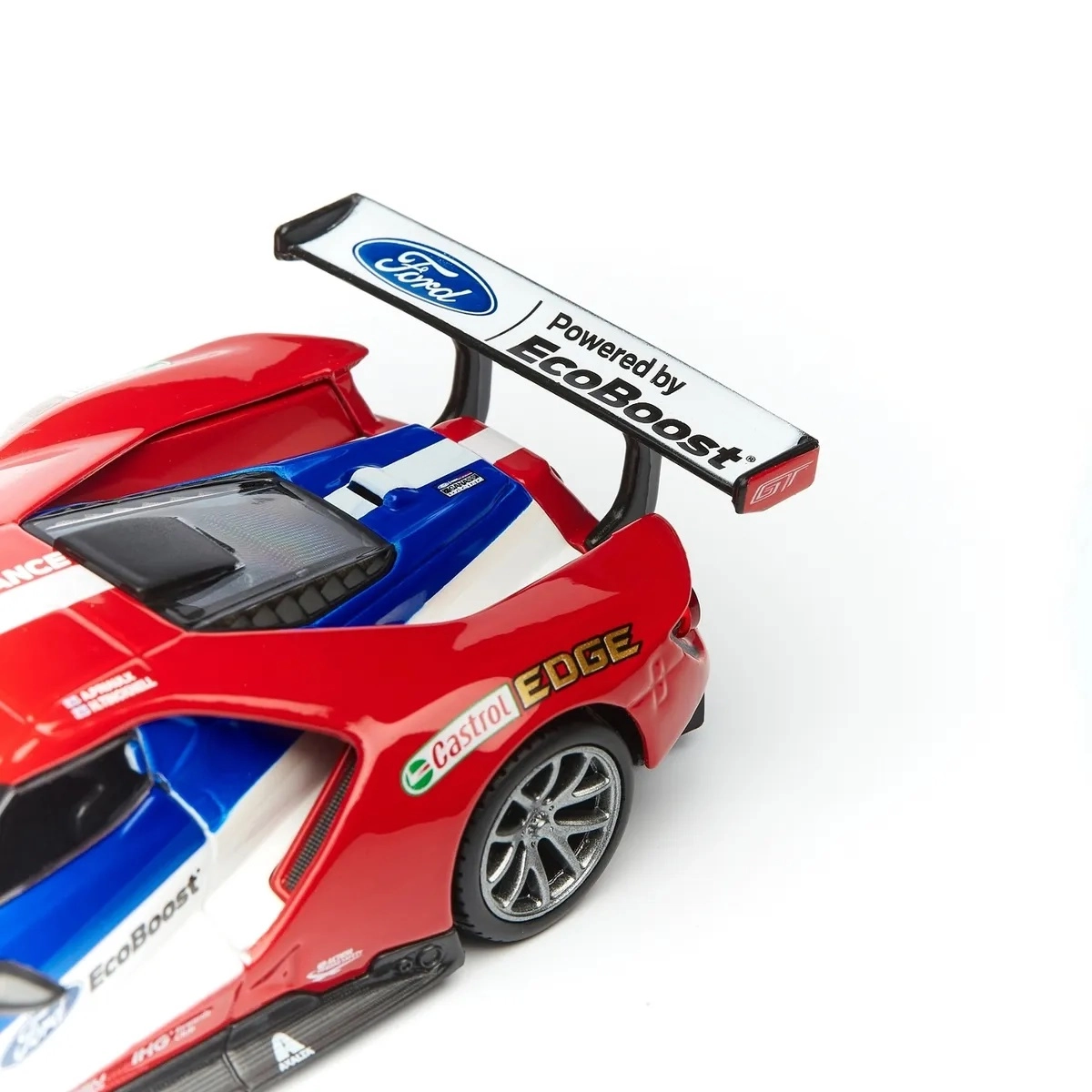 Velik zadnji spojler, difuzor in sprednji splitter zvesto posnemajo pravi dirkalni posebnik FORD GT za največjo pristnost.