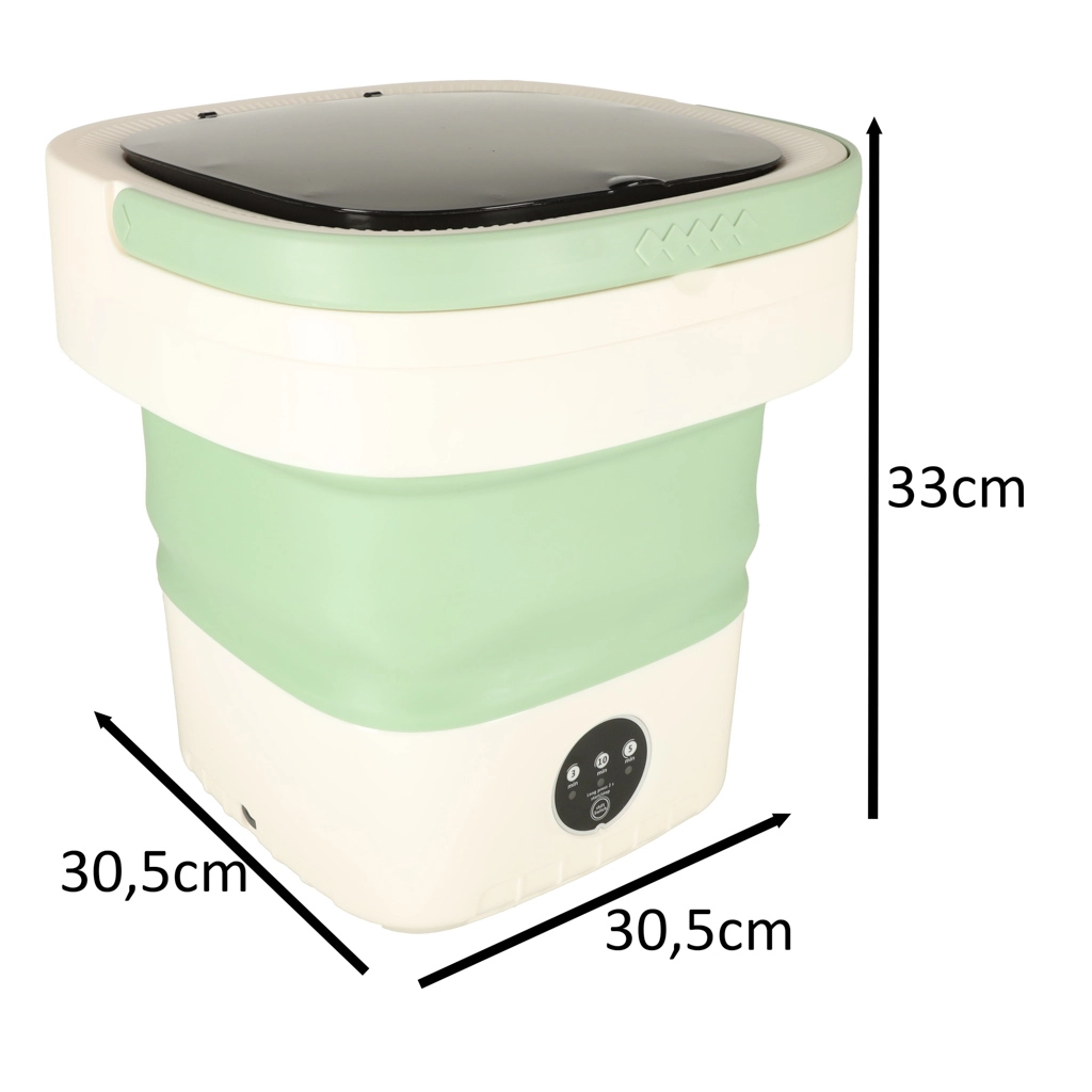 Zložljiva potovalna avtomatska pralni stroj 12L zelena - kompaktna in lahka pralna stroj za enostavno pranje na potovanjih. Popolnoma avtomatsko delovanje in enostavno upravljanje olajša vašo pripravo na avanture.