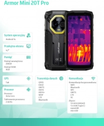 Armor Mini 20T Pro je zasnovan za ekstremne pogoje. Opremljen je z zaščito IP69K, kar pomeni popolno zaščito pred prahom ter odpornost na visokotlačno vodo in paro. Telefon je opremljen s termovizijsko kamero, ki omogoča zaznavanje toplotnih območij in ponuja novo raven funkcionalnosti za industrijsko in zunanjo uporabo. Poleg tega njegov robusten dizajn dopolnjujeta 8 GB RAM-a in 256 GB prostora za shranjevanje, kar zagotavlja dovolj zmogljivosti za zahtevne naloge.