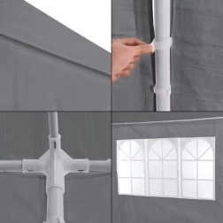 Šotor odlikujejo močne prašno lakirane kovinske cevi s premerom 32/25/25 mm, ki zagotavljajo stabilnost in odpornost proti koroziji. Trdna konstrukcija je jamstvo dolge življenjske dobe tudi pri pogosti uporabi. Vsaka noga šotora je pritrjena s kiti proti vetru, kar prispeva k stabilnosti. Streha in stene so izdelane iz odpornega, vodoodpornega polietilena z gostoto 100 g/m².
