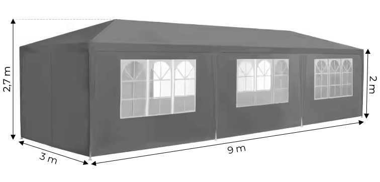 Popoln vrtni šotor znamke MultiGarden je idealna rešitev za vrtove, vrtičke in organizacijo dogodkov. Ta prostoren paviljon z merami 3x9x2,7 m nudi udoben prostor za prirejanje zunanjih dogodkov, kot so banketi, poroke ali velika družinska srečanja. Odporen proti soncu in dežju, njegova robustna konstrukcija zagotavlja zanesljivo zaščito v vsakem vremenu.