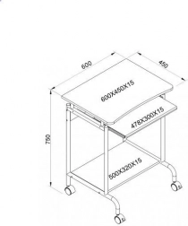 Spodnji del opremljen z prostorno polico za procesor, tiskalnik ali druge naprave (50 x 32 cm).