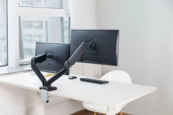 Stojalo je idealno za optimizacijo vašega delovnega prostora. Omogoča enostavno nastavljanje položaja monitorjev z enim dotikom, kar zagotavlja optimalno udobje in ergonomijo. Pritrditev na delovno mizo s pomočjo sponke zagotavlja izjemno stabilnost in varnost.