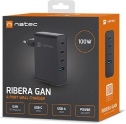 Omrežni polnilec Natec Ribera GaN 3x USB‑C + 1x USB‑A 100 W črna