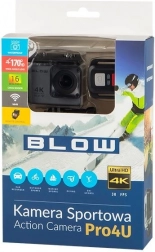 Lahka in vzdržljiva akcijska kamera BLOW Pro4U zajame vaše doživetje v 4K pri 30 sličicah/s, ponuja Wi‑Fi povezavo, 170° širokokotni objektiv, pregleden 2" LCD in vodotesno ohišje do 30 m. Podpira kartice microSD do 64 GB, snemanje med polnjenjem in lahko deluje kot spletna kamera.