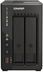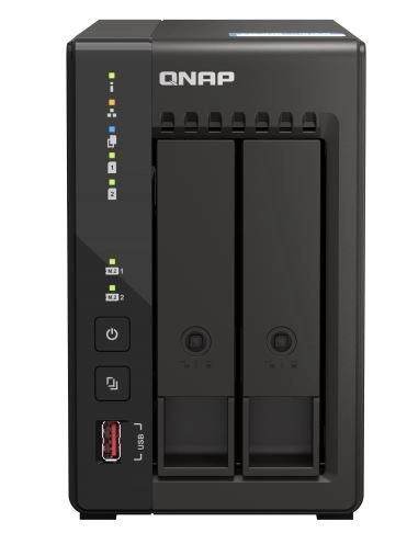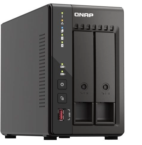 QNAP TS-253E je dvo-režni NAS, ki združuje visoko zmogljivost in prilagodljivost za podjetja in zahtevna gospodinjstva. Zahvaljujoč 2× 2,5GbE vmesniku dosega do 2,5× višje hitrosti po običajni napeljavi CAT5e, z združevanjem povezav pa do 5 Gb/s. Vgrajeni delovni pomnilnik 8 GB zagotavlja gladko delovanje več storitev hkrati – od datotečnega strežnika, varnostnega kopiranja, do poganjanja lahkih virtualnih strojev in vsebnikov.