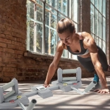 Nedrseče podloge in čvrst sistem vpenjanja ročajev zagotavljajo varno vadbo. Deska se enostavno zloži in zavzame malo prostora.