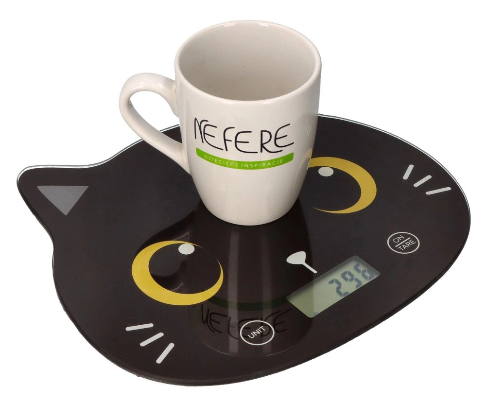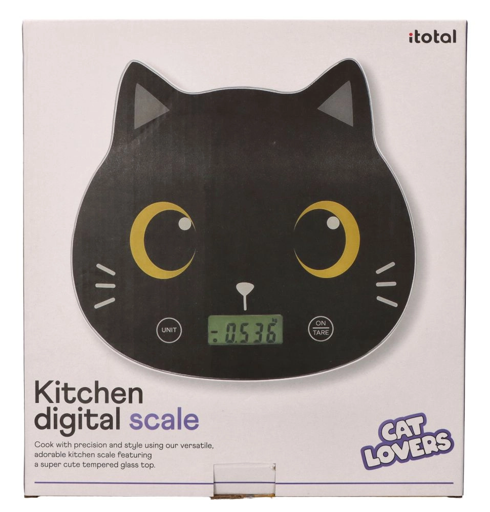 Ta elegantna kuhinjska tehtnica z motivom črne mačke združuje natančnost, preprosto upravljanje in igriv videz, ki popestri vašo kuhinjsko površino. Steklena površina se zlahka čisti in je higienska, zato je primerna za tehtanje sestavin neposredno na plošči ali v skledi.