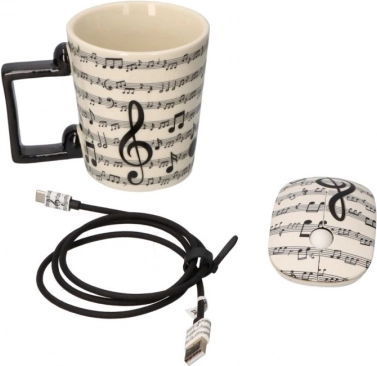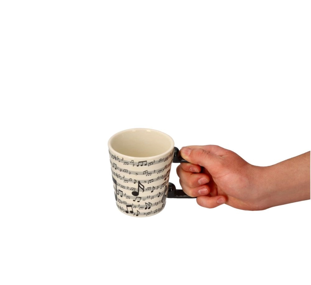 Tisk notnega črtovja in not daje skodelici izviren videz, ki pritegne na prvi pogled in odlično sovpada z modernim delovnim prostorom.